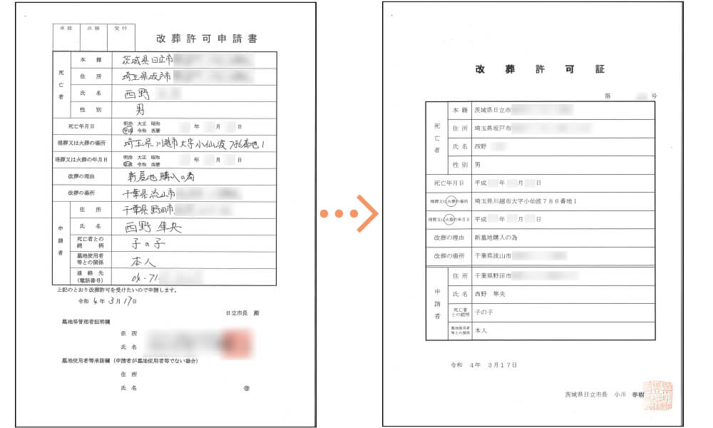 現在のお墓がある市区町村に発行してもらう書類です。これがないと改葬をすることができません。