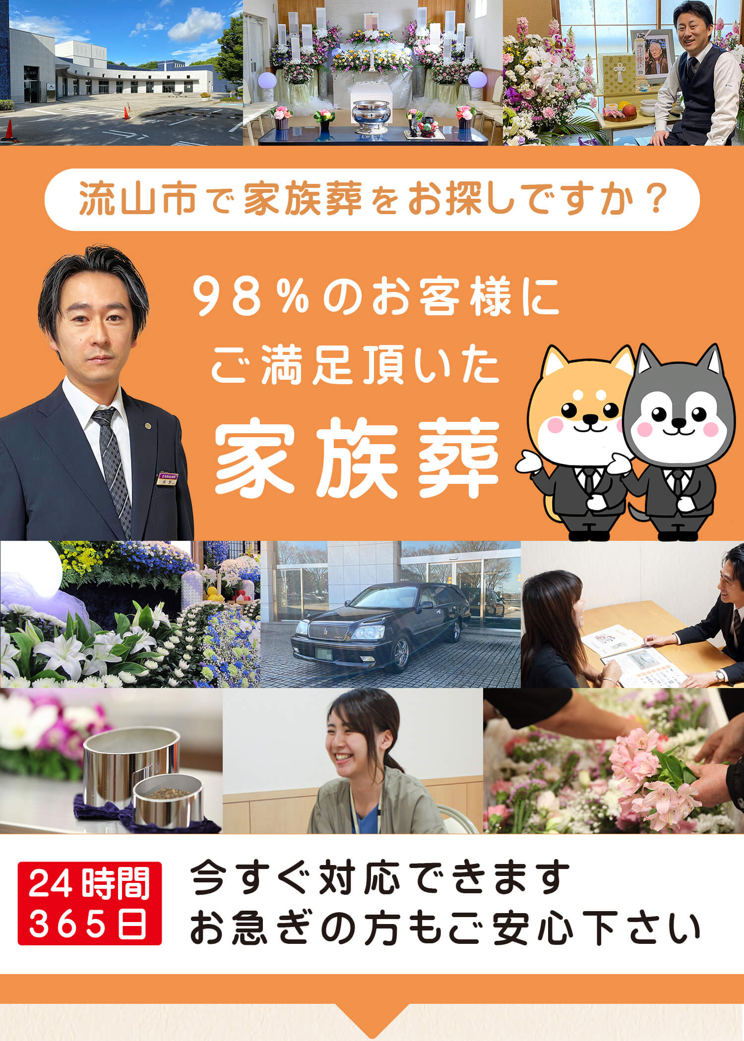 | 葬儀式場 | 流山家族葬ホール/ウイングホール柏斎場 |